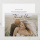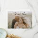Enkel skriptfoto bröllop tackkort. Baksidan har ett tackmeddelande som du kan anpassa för varje gäst eller ta bort om du föredrar att skriva ditt tack för hand. Klicka på redigeringsknappen för att anpassa denna design.