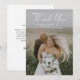 Enkel skriptfoto bröllop tackkort. Baksidan har ett tackmeddelande som du kan anpassa för varje gäst eller ta bort om du föredrar att skriva ditt tack för hand. Klicka på redigeringsknappen för att anpassa denna design.