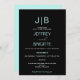Enkel skriptmonogram, teal och vit bröllop inbjudningar