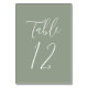 bordsnummer i elegant bröllop som innehåller bordsnumret som visas i ett vanligt vitt skript med en bakgrund för grönt. Färg och bakgrund kan ändras till bröllop färg med hjälp av verktygen Redigera. Om du vill beställa de här bord-korten redigerar du kortet var för sig med numret och lägger till det i din kundvagn. Upprepa för varje nummer som behövs.