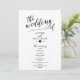 Elegant, snyggt och modernt det här svarta och vita bröllopsprogrammet med formaterade skriptbokstäver. Anpassa med dina uppgifter med hjälp av den mall som fälten tillhandahåller. Se till att besöka samlingen för att se fler objekt som koordinerar!
