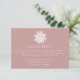 Fyll i din bröllopssvit med vårt Enkla Snöflinga Dammrosa Bröllopsmottagningskort. Med en djärv vit snöflinga högst upp och din bröllopsmottagningsinformation i vita seriffer på en dammrosa bakgrund, är detta kort den perfekta tillägget till vinter-, högtids- och julbröllop. Designen är enkel, modern och elegant, och erbjuder ett stilfullt sätt att dela din mottagningsinformation med gästerna.