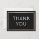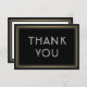 Uttrycklig tacksamhet till familj och vänner för alla tillfälle med elegantens anpassade platta tackkort. Alla formuleringar är enkla att anpassa eller radera. Om du föredrar att ge skrivan ditt tackmeddelande raderar du bara exempeltexten. Den här malldesignen har en modern svart, vit och guld-faux-folie gräns med snyggt art deco-inspirerad vintage-typografi. Observera att guld är tryckt på färg, inte metallfolie. Elegant personlig tackkort gör en tankfull avslutande beröring till alla händelser, firande eller sammankomst.