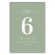 Enkelt Solid Färg Light Löv Grönt Bröllopsmottagning för Bordsnummer under middagen. Det här moderna Bord-kortet för chic är enkelt klassiskt och elegant med oformaterad bakgrund färg och en söt namnteckning skriptcalligrafteckensnitt med svan. Visas i den nya Colorway. Finns i flera alternativ för färg eller kan redigera färger i redigeraren (klicka på anpassa ytterligare medan du anpassar). För att se mer, sök efter Chic Paperies samlingar i bröllop 2022 för att se alla de trendmönster som finns och bröllop färg för detta år.