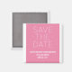 Enkel Spara datum magneter i rosa och vitt med modern typografi. Det här trendiget och chicen spara datum magneter är enkelt att anpassa med dina uppgifter om bröllop. Om du vill ha fler anpassningsalternativ klickar du på knappen Anpassa.