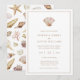 Inbjudan till enkelt strandbröllop. Unik och stilren, denna enkla moderna strandbröllopsinbjudan har vackra handmålade snigelskal, koraller och sjöstjärnor i jordtonade neutrala färger. Texten är tan och bakgrunden är vit. Baksidan har ett lekfullt snigelskalsmönster. Hitta matchande föremål i Watercolor Seashell Beach Wedding Collection.