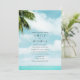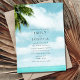 Vår strandbröllopsinbjudan är det perfekta sättet att sätta tonen för din speciella dag. Designen har en fantastisk strandinspirerad färgpalett och en enkel textdesign som är perfekt för ditt destinationstrandbröllop.