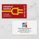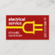 Ett ljust rött hölje har en gults strömkontakt. Över överst ljuger namn med ditt prestigefyllda namn vid basen. I slutet av kontakten finns inverterad kontaktinformation. En "plug and sprocket"-logotyp som du kan använda är överst i ett vitt omslag. Detta följs av företaget namn, dess kontaktuppgifter och ett sloganalternativ som du kan ändra. Ett underbart enkelt kort för elektriker att använda. #electrcian #Electricalservice #electricalservicen #electricalentreprener #electricalingener #bulb #electricpower #electricalwiring #plug #zazzlemade ade