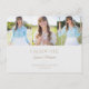 Detta minimalistiska vykort för studenten-annonsering har tre foton, enkel typografi och en palett för grått och guld färg. På framsidan visas de tre fotona längst upp. Under fotona skrivs "Student" i modern versaltypografi, där gradens namn skrivs i kalligrafi nedanför. Vid grund lägger du till student och studenten. Typografin är guld mot lätt grått bakgrund. På baksidan av vykortet kan du lägga till ett meddelande till mottagare och/eller studentfest.