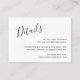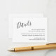 Kortet för svart och vitt bröllop med "Detaljer" i ett handskript i eleganten längst upp till lämna tillsammans med information om högernas justering i det nedre hörnet av högerna. Den chic handskriften ger en romantisk beröring till denna minimalistiska utformning.