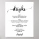 Denna enkla svarta kalligrafi dryck meny skylt är perfekt för ett rustikt eller modernt bröllop. Den minimalistiska designen har ett elegant borstskrifts teckensnitt och ett vackert feminint hjärta. Anpassa skylten med drycker som finns tillgängliga på er mottagning.