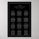 Enkel affisch för sittplatser vid bröllop med modern men elegant design med din tvåbokstavsmonogram, namn och datum med kartan nedan, omgiven av en tunn ram. Mallen har tre kolumner med tolv bord med åtta gäster som exempel, men kan anpassas för ditt antal bord och gäster. All text är vit på svart bakgrund och kan ändras till valfri färg genom att klicka på "anpassa"-knappen. En chic och stilren design för bröllopsplatser som passar perfekt för minimalistiska par.