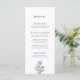 Fånga dina gäster med den enkla men bedövande stil i vår svarta och vita Blommigt Disline Bröllop Menu. På den här menyn visas den naturliga skönheten hos ett botaniskt motiv utan att du distraherar från ditt allmänna estetiska bröllop. Dess klassiska svarta och vita färg-plan och rent linjer skapar en luft av raffinerad elegans som kommer att imponera på dina nära och kära. Öka din matupplevelse med den här mångsidiga, minnesvärda menyn.