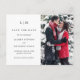 Med ett enkelt foto kan du spara det aktuella vykortet med en modern utformning av eleganten med två brev monogram och dina bröllop-detaljer i svart över en vit bakgrund. Till högerna är lodräts favoritfoto. Typsnitt kan ändras till vilket färg som helst. Lägg till din returadress och ditt personliga meddelande längst bak. En chic och snyggt som är underbar för ett minimalistiskt par.