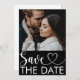 Chic och elegant, är detta moderna "spara datumet"-platta bröllop-kort. På framsidan finns ditt favoritfoto från par med eleganten "Spara datumkalligrafi" med hjärtedetaljer. På motsatt sida finns det utrymme för dig att lägga till information. Mycket enkelt att anpassa med egen information.