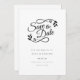 Den här enkla svartvitt som sparar datumkortet innehåller ett söt skript som sparar datumet med ett löv-motiv, som anges ovanför dina detaljer i en modern elegant.