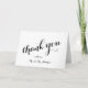 Enkel bröllop tack gratulationskort med handskriven skrivstil . Elke Clarke © Skicka ut ditt bröllop tack meddelande som nygifta till dina vänner och familj med detta eleganta, minnesvärda, enkla tack bröllopskort med orden "tack" skrivna i en svart handskriven typsnittskrivstil. Lägg till ditt personliga tackmeddelande på baksidan eller lämna det tomt och skriv ditt meddelande personligen. Andra färger tillgängliga