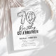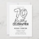 Våra minimalistiska 70-årsfödelsedagsinbjudningar är redo att omdefiniera din milstolpsfirande. Med en enkel vit bakgrund som utstrålar elegans, en fantasifull handritad "70" heliumballongdoodle som ger en lekfull touch och en modern textmall som du kan anpassa med lätthet. Ett trendigt svartvitt-mönster på baksidan fullbordar en design som mästarefullt förenar sofistikation och kul. Omdefiniera normen och inled de gyllene åren med stil.