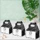 Den här designen har en elegant som ändå är enkel arrangemang av bridens och gruppens personlig initialer. Par initialer omges av en svart vattenfärg ring. Den här svarta och vita designen är enkel, men elegant på alla sätt. Denna enkla kombination av färg skapar ett sofistikerat, trendig och chic stil. Utformning av en förmånslåda i elegant bröllop med modernt inslag. Det finns också möjlighet att matcha bröllopsinbjudningar och andra artiklar i kontorsartiklar.