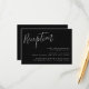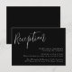 Eleganta bröllopsinbjudningskort med texten "Mottagning" i vit skrivstil på svart bakgrund (eller valfri färg). Anpassa de enkla bröllopskorten genom att lägga till detaljer om mottagningen i vit text. Designad för att samordna med vår Simple Script bröllopssamling.