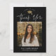 Enkel Svart och Vit Foto Examen Tacksamhetskort med elegant guld folie lock och minimalistisk typografi och ett foto på framsidan. Baksidan har ett meddelande från examen. Klicka på redigeringsknappen för att anpassa denna design.