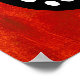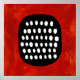 En fet svart form fylld med jämnt fördelade vita ovaler ställs in mot en pulserande röd bakgrund. Enkelheten och kontrasten skapar en slående visuell effekt.