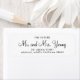 Moderna bröllops returadressetiketter med en enkel design med orden "The Future Mr. and Mrs." tillsammans med ditt namn i en elegant svart skrift och två rader text för din returadress i en sans-serif-teckensnitt, på en vit bakgrund. Dessa minimalistiska och eleganta returadressetiketter är ett bra sätt att lägga till en personlig touch på dina kuvert.
