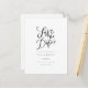 Minimalistisk elegant svart-vit spara datum-kort med kärlekshjärta. Lägg till dina speciella meddelandedetaljer i en klassisk text.