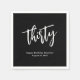 Det är dags för party att fira en 30års födelsedag bash med den här moderna och djärva födelsedagsfesten napkin. Den här enkla designen av snyggtar har en svart snyggt med vita handskrivna skriptaccenter som blandats med ett modernt sans serif-teckensnitt. Anpassa textmallen med hedersgästens namn och datum.