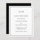 Med enkel budget sparar du datumet med en modern utformning av eleganten, med två brev monogram överst och dina bröllop-detaljer omgivna av ett tunt gräns. All inslag i designläge är i svartvitt och kan ändras i designredigeringsverktyget i verktyg. En chic och snyggt som är underbar för ett minimalistiskt par.