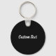 Den svarta nyckelkedjan har text i vitt skript. Text kan redigeras eller tas bort.