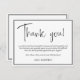 Sympati tack för att du skickade ut ett kort efter en begravning eller minnesceremoni med "tack" skrivet i ett handskript inuti tunna svarta ram på vit papper. Lägg till ett personligt tackkort eller lämna tomt i skriva för hand.