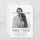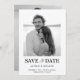 Fira det kommande bröllop med den här eleganten spara datumkortet och visa ett klassiskt svartvitt fotoset mot en ren vit bakgrund. Designen innehåller texten "Spara datum" i en snyggt, ett sofistikerat teckensnitt som ger en tidslängd och chic. Det här kortet är perfekt för par som uppskattar ett modernt och förfinat utseende och är helt i anpassade med dina foto- och bröllop-detaljer, vilket skapar en vacker och minnesvärd keepy för dina gäster.