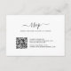 Modern Bröllop OSA-kort med sidhuvud i en elegant-skripttypografi med dekortecken tillsammans med QR-koden. Baksidan har ditt favoritfoto. All text är svart över en vit bakgrund och kan ändras genom att klicka på knappen "anpassa". Det här enkla Bröllop-responskortet med bild går bra med vilken stil som helst av bröllopsinbjudan.