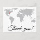 Ett enkelt tack som du vykort med en världskarta på framsidan. Marker på karta kan flyttat för att visa var firande tog ställe!