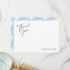 Baksidan har ett blekt blått gingham-rutmönster. Framsidan har en handskriven typsnitt med orden ' tack ' och namnet du väljer längst ner på kortet som kan anpassas till valfri text du önskar.