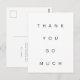 Enkelt tack så mycket vykort. Modern svart typografi i stor, tunn font. Författat meddelande på baksidan som kan anpassas.