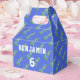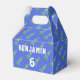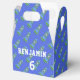 Enkelt Tecknad Rocket Blue Kid's Birthday Favor Box. Ett mönster med enkla blå raketer mot blå bakgrund. Anpassa den med ditt namn och din ålder.