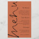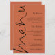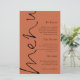 Med en budgetpris storlek på 5,5 x 8,5 tum har denna contemporary terracotta-design Menu i elegant angett skript som löper upp på den lämnat sidan och resten av texten justeras till den höger som du enkelt kan anpassa såväl som namn och bröllop-datum på baksidan. Text- och bakgrundsalternativ på båda sidor kan ändras till valfri färg med hjälp av alternativet Anpassa ytterligare.
