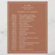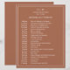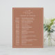 Enkel terrakotta bröllopstidslinje med en modern men elegant design med ert tvåbokstavsmonogram högst upp och era detaljer omgivna av en tunn ram. All text är vit på en bränd orange/rustbakgrund och kan ändras till valfri färg genom att klicka på "anpassa"-knappen. En chic och stilren design som passar perfekt för ett minimalistiskt par.