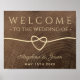 Elegant, enkel, förtjusande, rustik trä bröllop välkomstskylt - skylt med unik guld folie knuta repet hjärta.