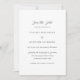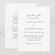 Traditionell bröllopsinbjudan med enkel design och evenemangsinformation i klassisk serif och elegant scriptfont.
