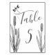 Enkel trollslända och kaveldun svart vit bröllopsd bordsnummer