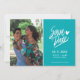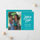 Få dina gäster att bli exalterade inför er stora dag med vår turkosa moderna fotobröllopsinbjudan. Detta kort har ett vackert foto av dig och din partner, tillsammans med alla viktiga detaljer som dina gäster behöver veta.