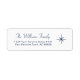 Enkel taffarreturadressetikett, med marin blå typografi på vit bakgrund. Med anpassadets text kan du lägga till din egen familj namn. Ett fint tillägg till dina helgdagskort och inbjudningar på vintern.