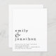 Enkel typografi Bröllop spara datum. Ett budgetvänligt SMALLER-alternativ på 4,5 x 5,6 tum. Finns på ett SEMI GLOSS 110 lb-kort LAGRAR eller ett SATIN AVSLUTAR 80 lb TINNER PAPPRA LAGRAR. Kuvert är ett valfritt extra. Informellt stil. Namn är stort i snyggt med gemener med detaljerna i grund och mycket tomt utrymme överst för contemporary stil. Anpassa texten till dina egna detaljer.