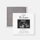 En enkel modern svart vit typografi magnet med ett sonogram foto för att tillkännage din graviditet till familj och vänner.