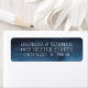 Moderna och mankulina bröllop-returetiketter med en enkel design med tre linjer text i ett vitt serif-teckensnitt över en mörk, en marin blå vattenfärg tvättar. Dessa moody returetiketter är ett underbart sätt att göra kuverten personligt tryckt.
