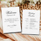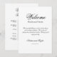 Detta eleganta enkla svart-vit bröllops välkomstbrev och tidslinjekort med en mycket elegant kalligrafi kan enkelt anpassas för ditt speciella evenemang! Med detta personliga kort är du ett steg närmare att förvandla din fest till ett anmärkningsvärt evenemang.