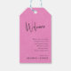 Enkel välkomstskylt för bröllopspresent med rosa l presentetikett
